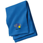 Fleece Blanket with Logo on one corner. Name can be added for an additional fee. Enjoy outdoor games or relax while you watch TV in our warm Sweatshirt Blanket. Perfect for screen printing a logo. 9-ounce, 60/40 ring spun combed cotton/poly Fully hemmed Dimensions: 50" x 60"